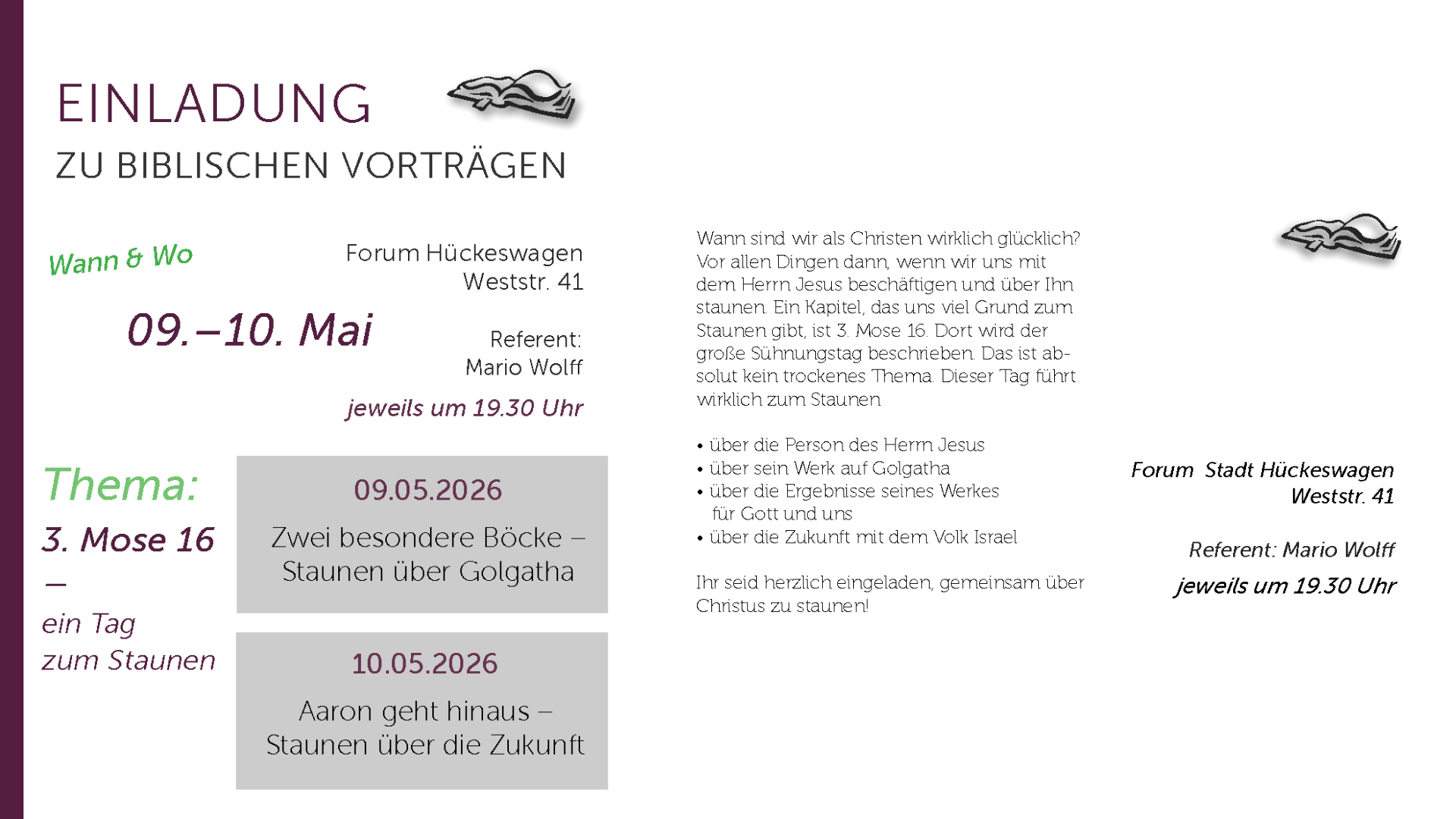 Gerne laden wir Sie ein, und heißen Sie herzlich willkommen, Jesus Christus mit uns besser kennenzulernen. Er ist das Thema der Bibel. Er ist das Zentrum der Weltgeschichte.